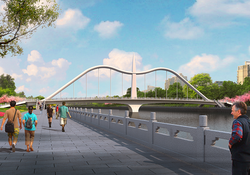 雄鷹展翅的墩梁下部造型,配以上部張力挺拔的弓弩,結構造型新穎獨特,內(nèi)涵豐富,將蒙古族的文化元素融入其中;另外江南文化的元素可以在橋梁欄桿上加以體現(xiàn)。